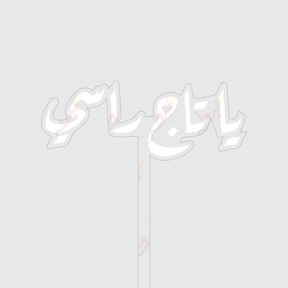 تغريسة مطبوع عليها عبارة " يا تاج راسي "المادة: اكريليك شفافالسمك: 2 ملمالمقاس التقريبي: 14*16سم...