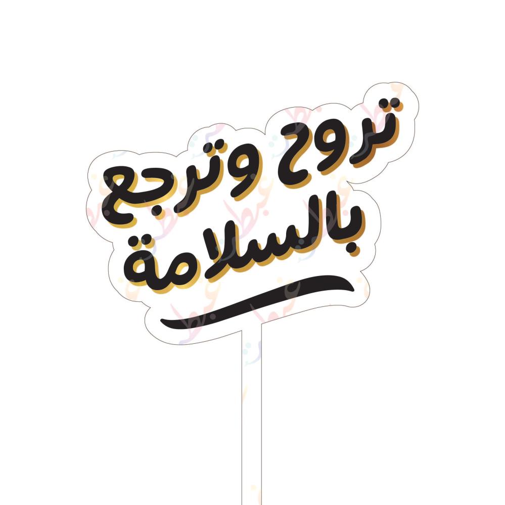تغريسة مطبوع عليها عبارة " تروح و ترجع بالسلامة "